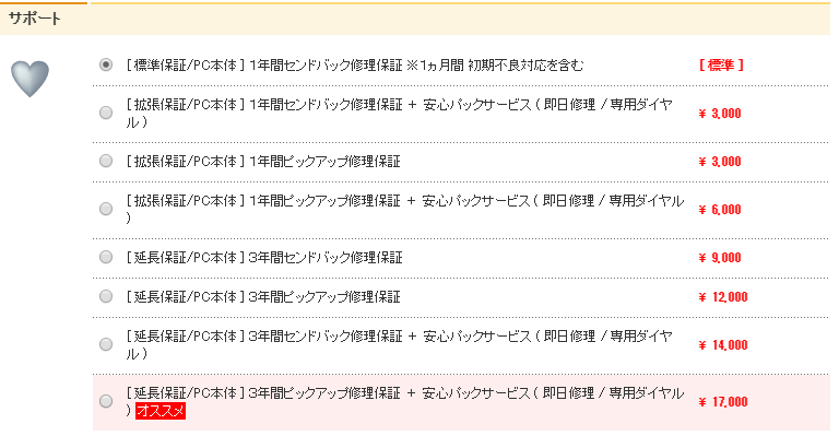 また、マウスコンピューターの延長保証に加入しておけば安心です。