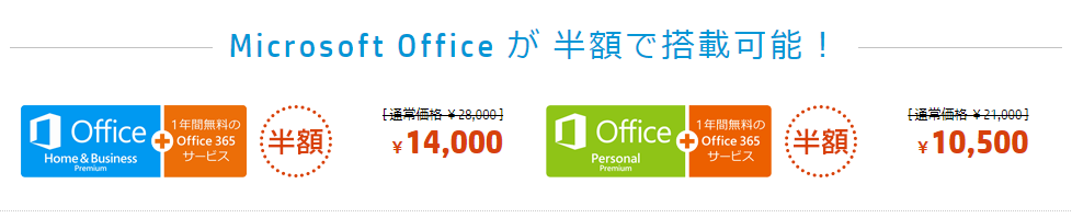 実際に製品の詳細ページでは、上記画像のように、マイクソフトオフィスがセットで半額(通常よりも1万円)
