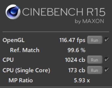 CPUパフォーマンスをテストするCINEBENCH R15では上記のような結果に。グラフは当ブログの過去の計測結果です。Core i7 8750HはデスクトップCPUと肩を並べるほどのパフォーマンスがあります。