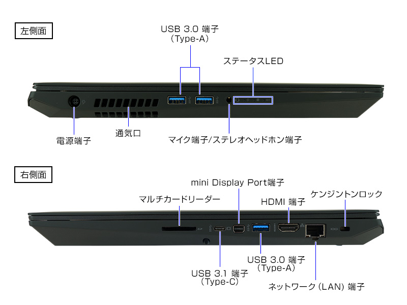 | インターフェース | USB3.0×3/USB3.1TypeC×1/HDMI×1miniDisplayPort×1 |