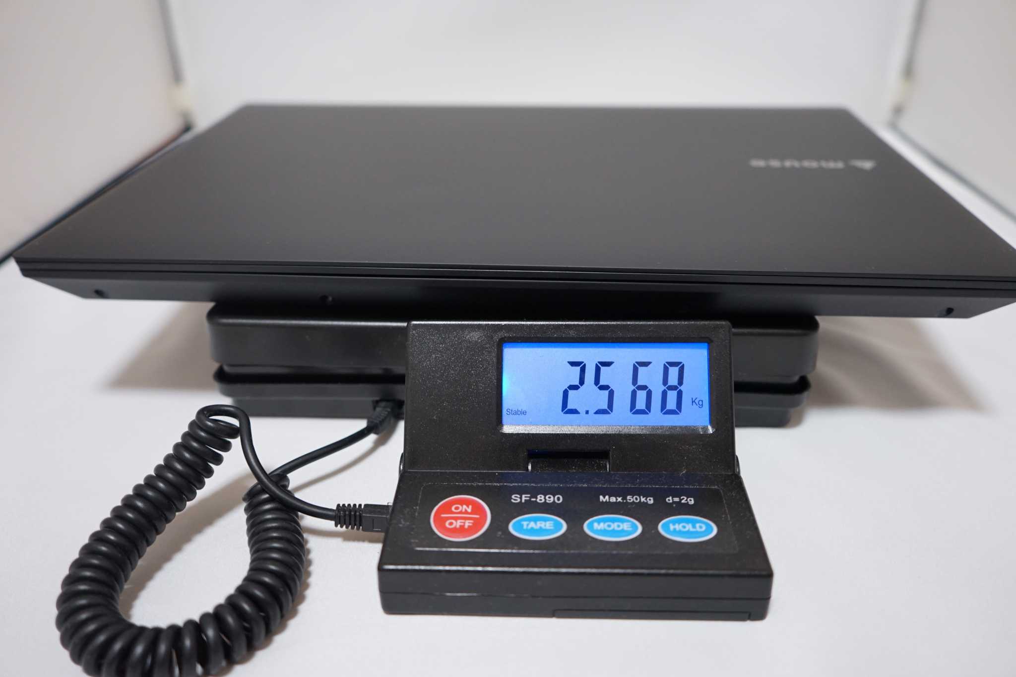 バッテリー装着済みで2.568kgでした。ゲーミングノートとしては普通だと思います。