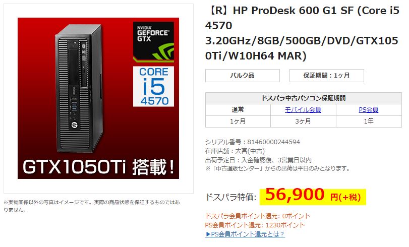 ドスパラ以外にも中古PCとしてネット通販で販売している企業がありますが、シリアル番号がきちんと明記されているかどうかはとても大切ですのでもし購入を検討されている方がいたらチェックしましょう。