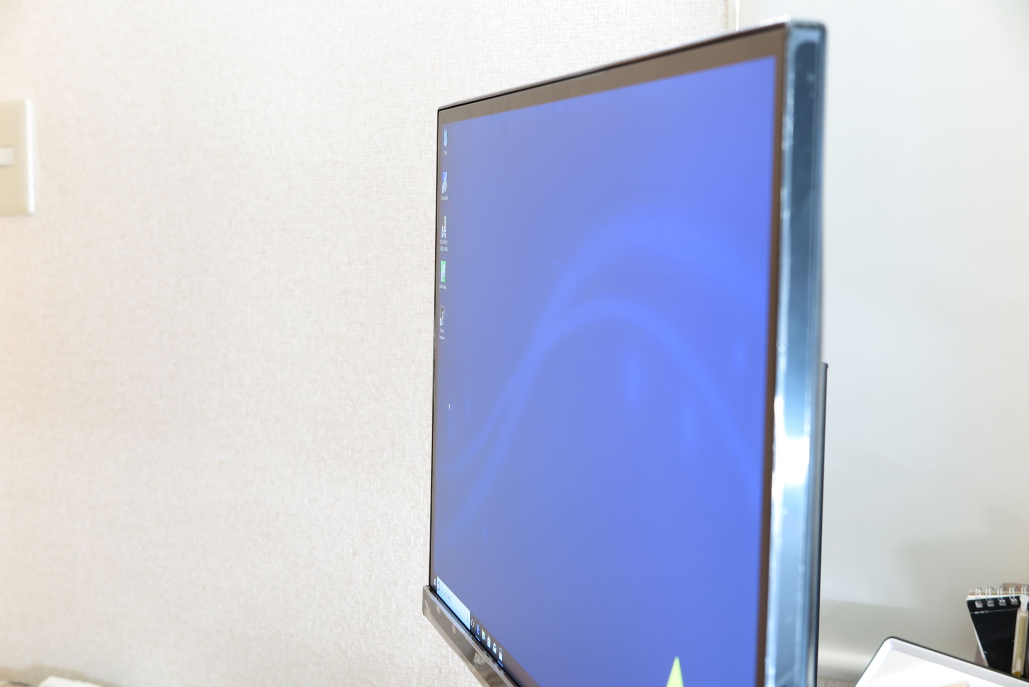 首振り機能を使った縦置き表示です。トレステPCを購入するとディスプレイスタンドが付属してくるため縦画面で使うことはないかもしれません。