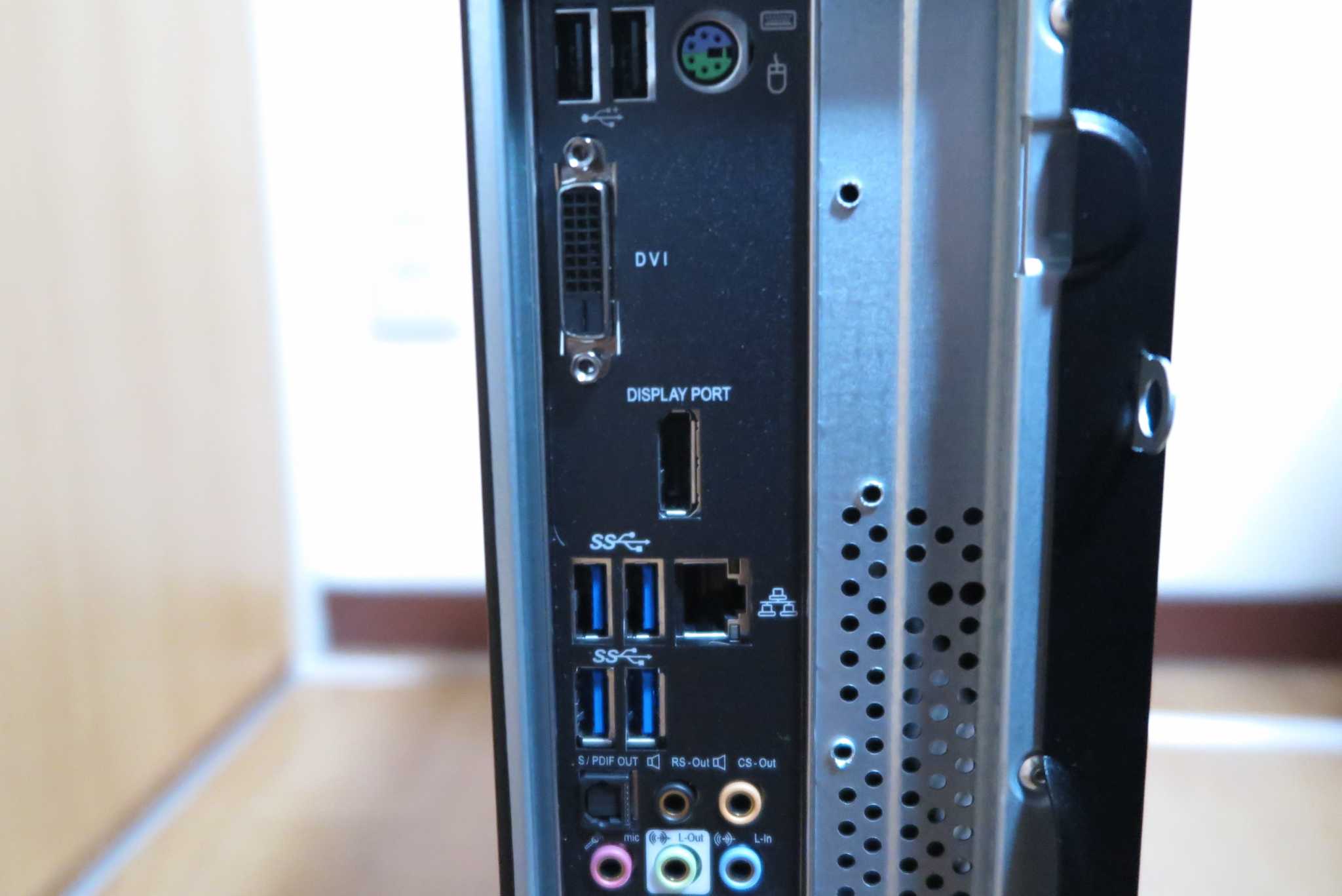 マザーボードにmsi社製のmicroATX「Z370M-S01」を搭載しているため、ディスプレイ出力はDVI、displayポートを装備し、USBポートは3.0と2.0合わせて6つ。前面と併せると合計8つ。
