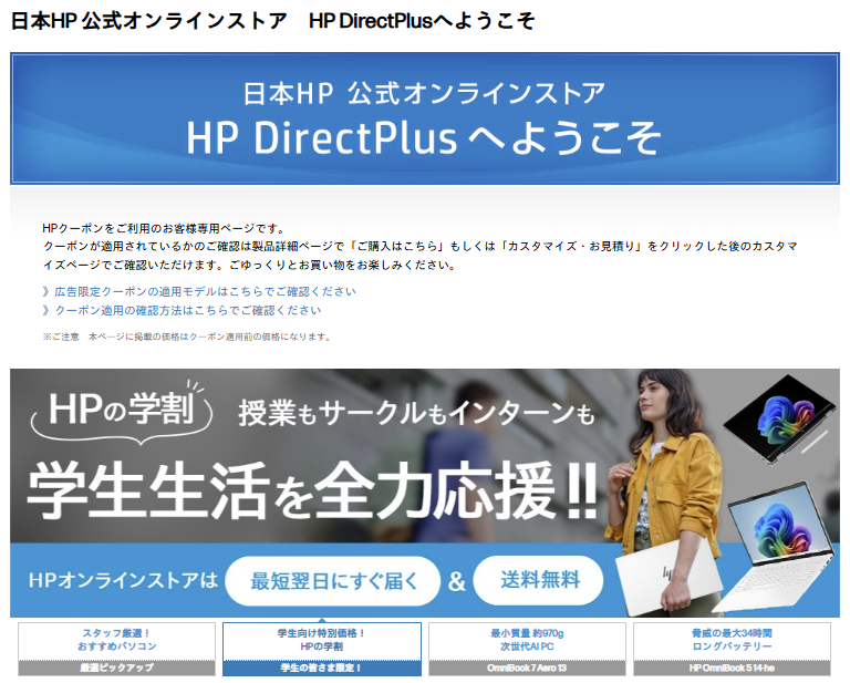 日本HP直販サイトで購入できる個人向けパソコンが対象です。