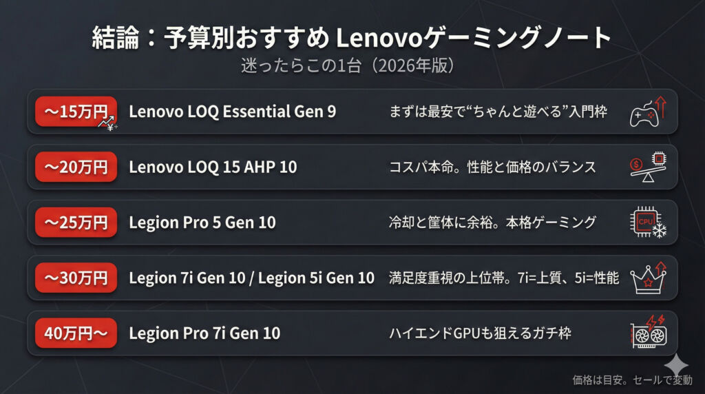 「まずはコスパ良くゲームを快適に遊ぶ」が目的ならLOQがハマりやすい。