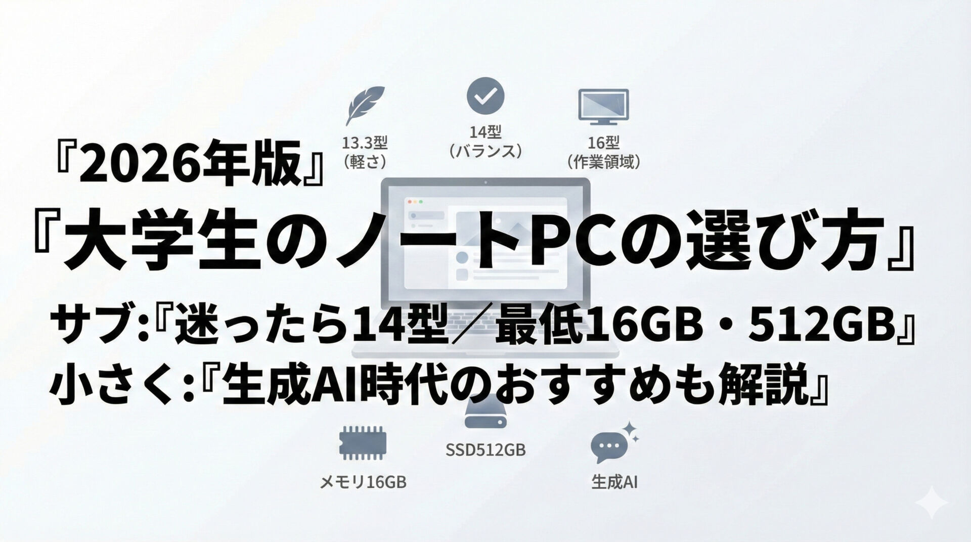 2026年のノートPCは、性能・サイズ・価格の選択肢が増え、学生でも「使い方に合った1台」を選びやすくなっています。