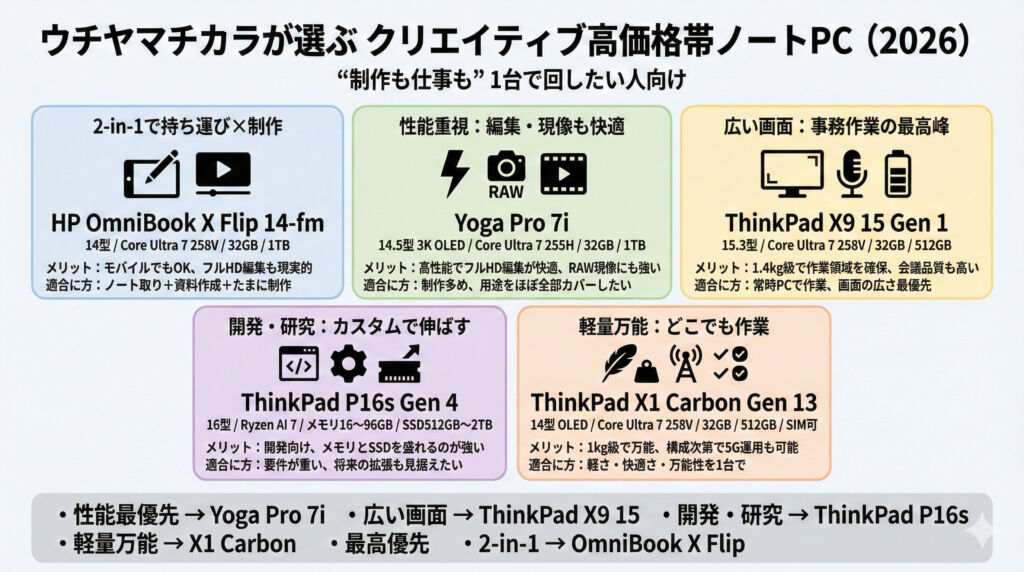 • 性能最優先(編集・現像) → Yoga Pro 7i