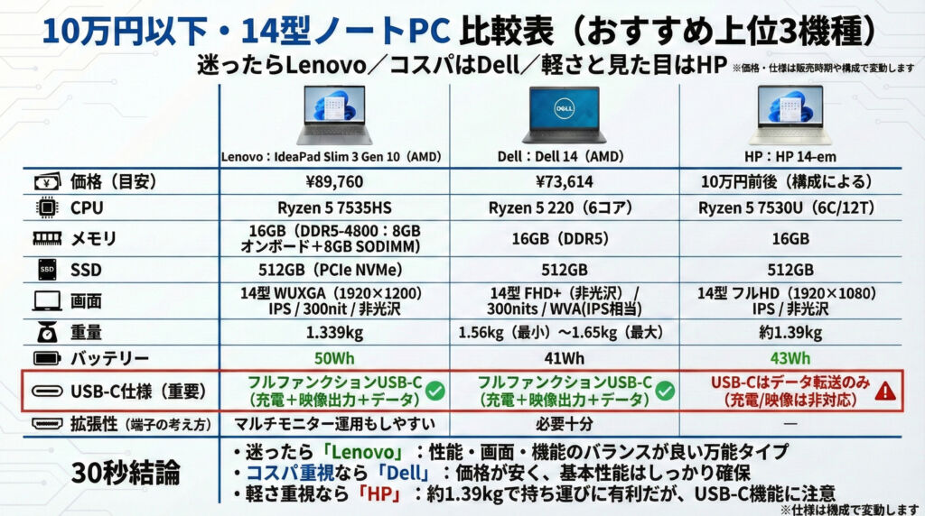 10万円以下で14型を選ぶポイント(失敗しない基準)