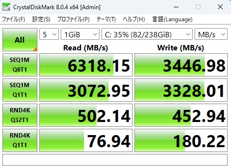 PCIe 4.0対応のSSDとして十分に高速で、Windowsやアプリの起動、ファイルの展開などが非常にスムーズです。