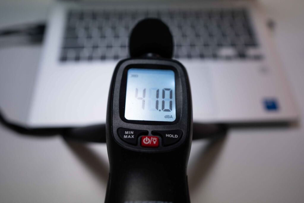 高負荷時のファンノイズを計測したところ、最大で約40dBA前後でした。