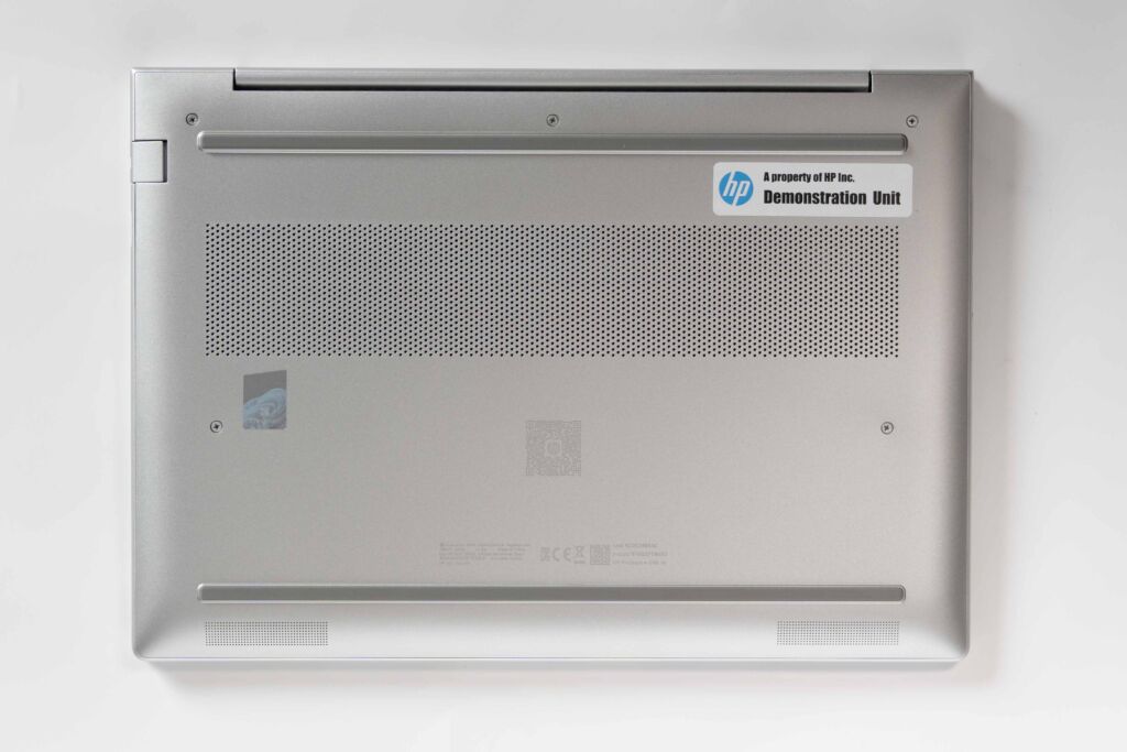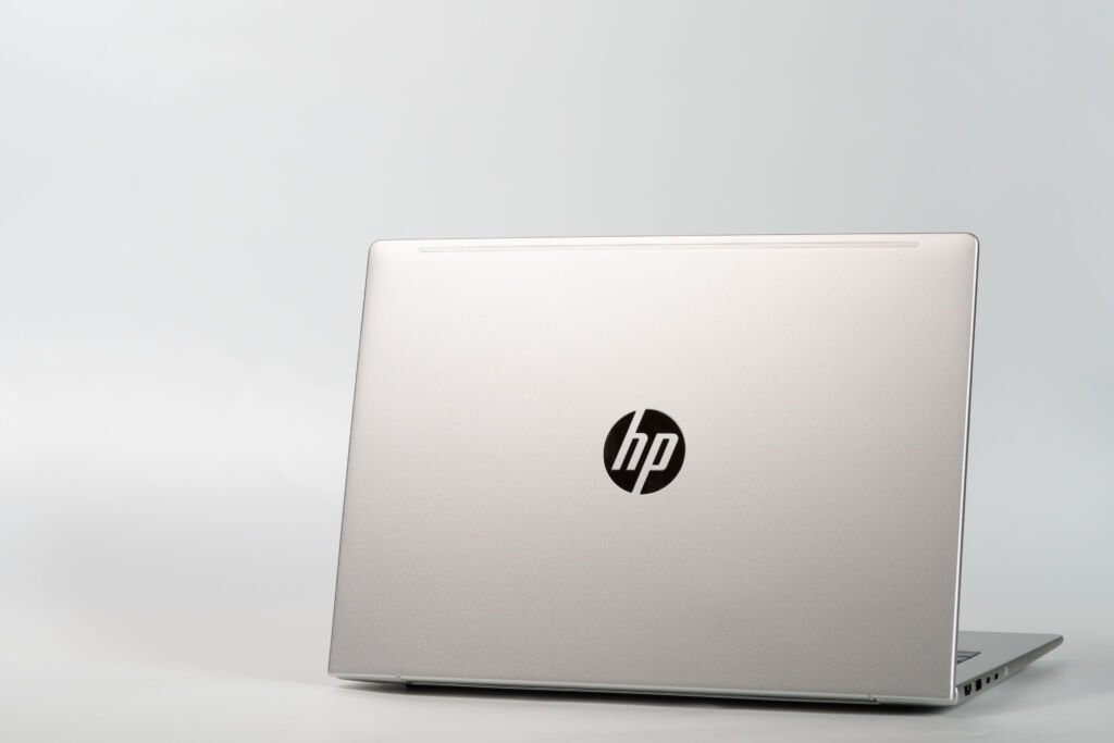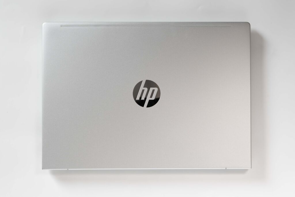 天板中央にはHPのロゴが配置され、主張しすぎないシルバーのカラーリングと相まって、清潔感のある印象を与えます。