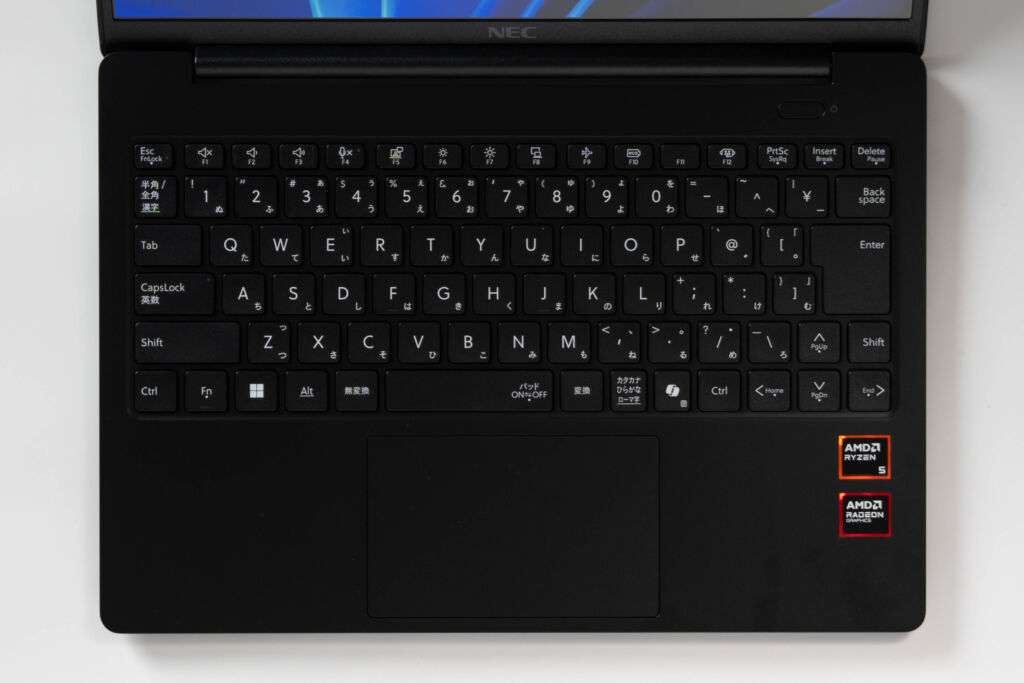キーボード側も同じトーンでまとめられており、NECロゴの存在感が薄れているため、よりシンプルでミニマルな印象を与えます。