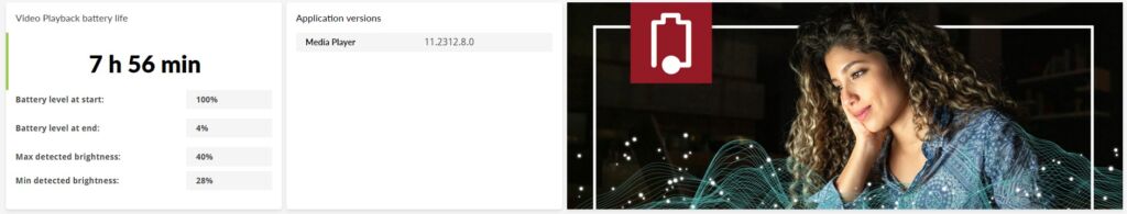 実際に動画再生テスト(明るさ40%設定、Media Player使用)を行ったところ、
