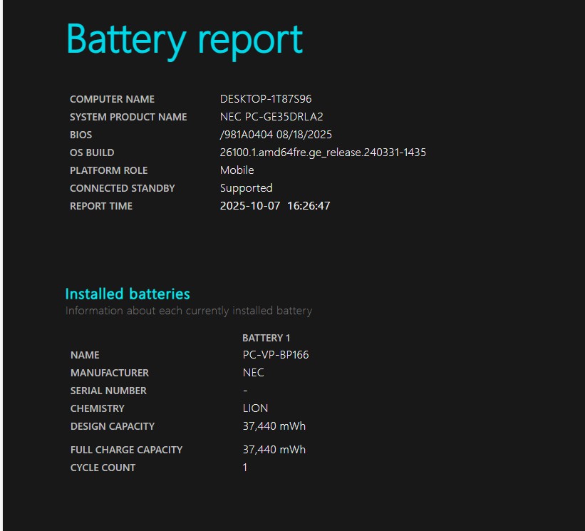LAVIE Direct N14 Slimのバッテリー容量は37Whとやや控えめです。