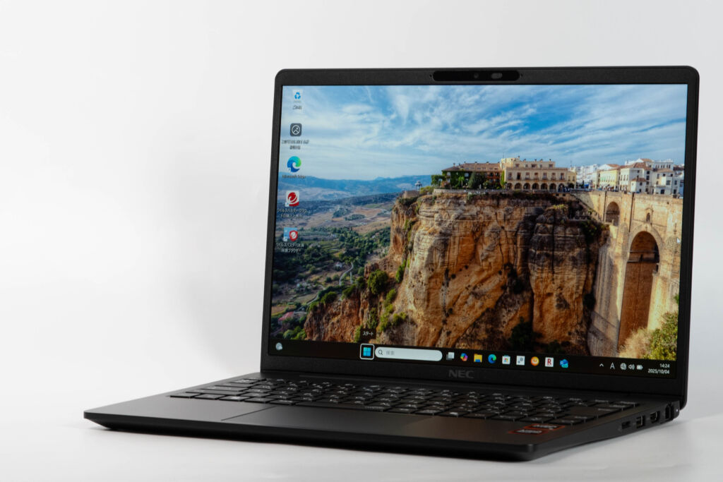LAVIE Direct N14 Slimは、14型・約1.1kgという軽量設計でありながら、法人モデル譲りの堅実な作りが光るモバイルノートPCです。