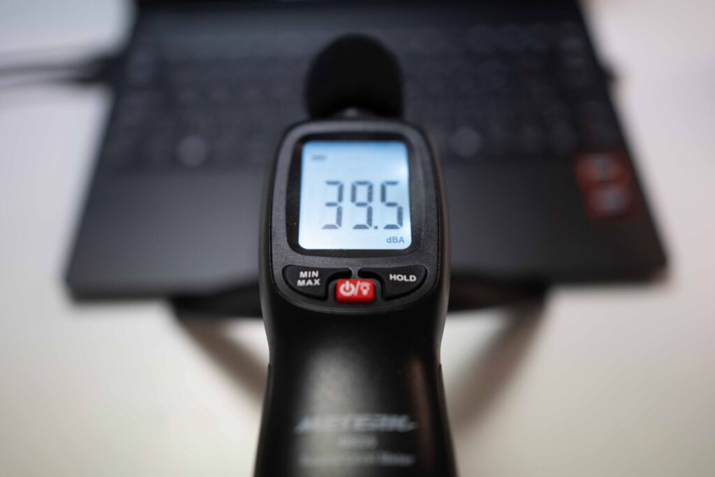 Cinebench実行時のファンノイズを計測したところ、約39.5dBAという結果でした。