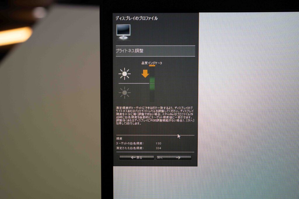 実測した最大輝度は約334nitで、屋内での使用には十分な明るさ。