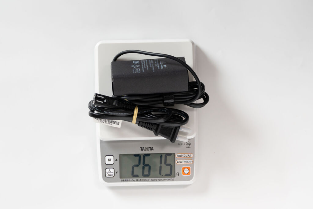 ACアダプターの重量は約261gで、セットでも合計約1.36kg。