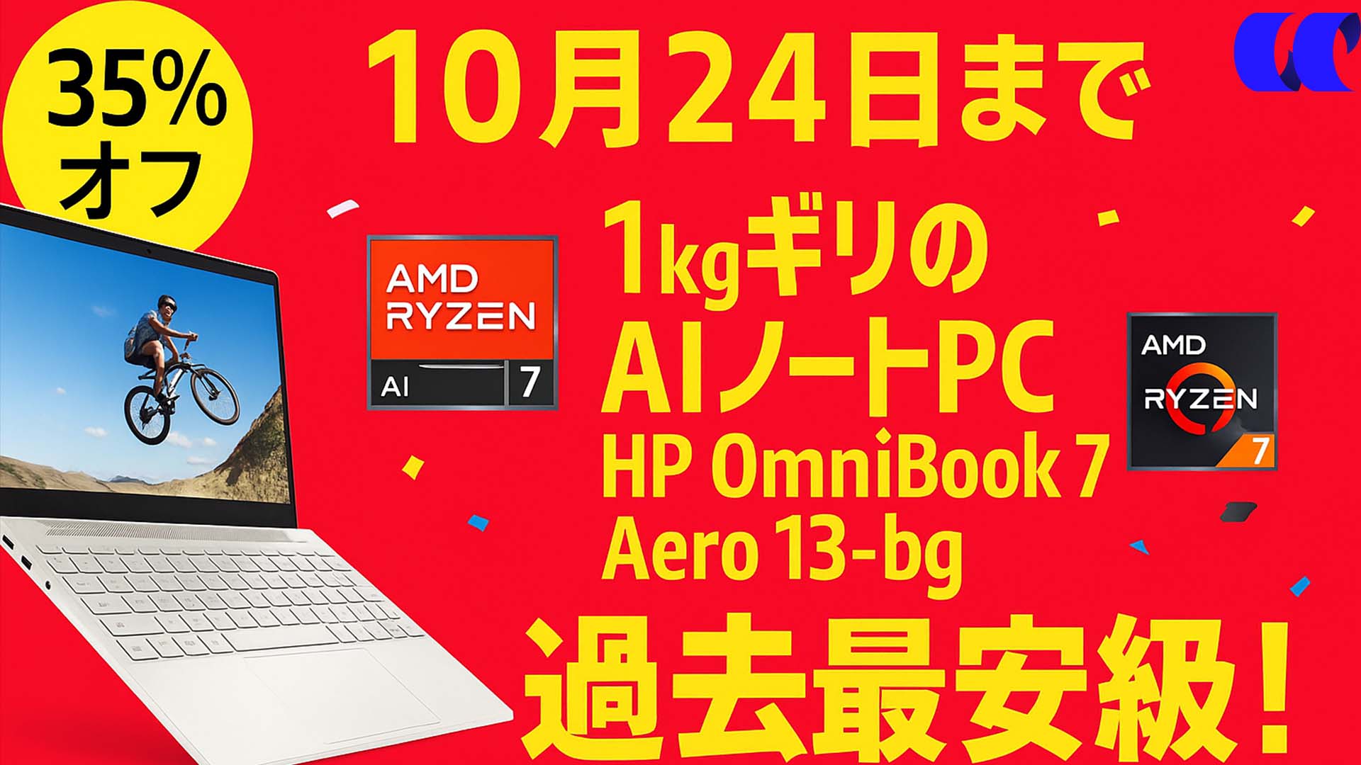 HPの軽量ハイエンドノートPC「HP OmniBook 7 Aero 13-bg」が、10月24日までの期間限定で過去最安級価格に!