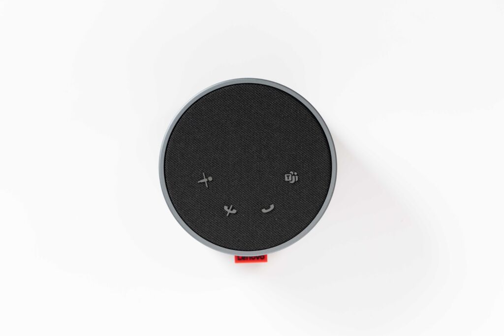 Lenovo Go USB Type-C スピーカーフォンは、シンプルで高級感のある円形デザインを採用しています。