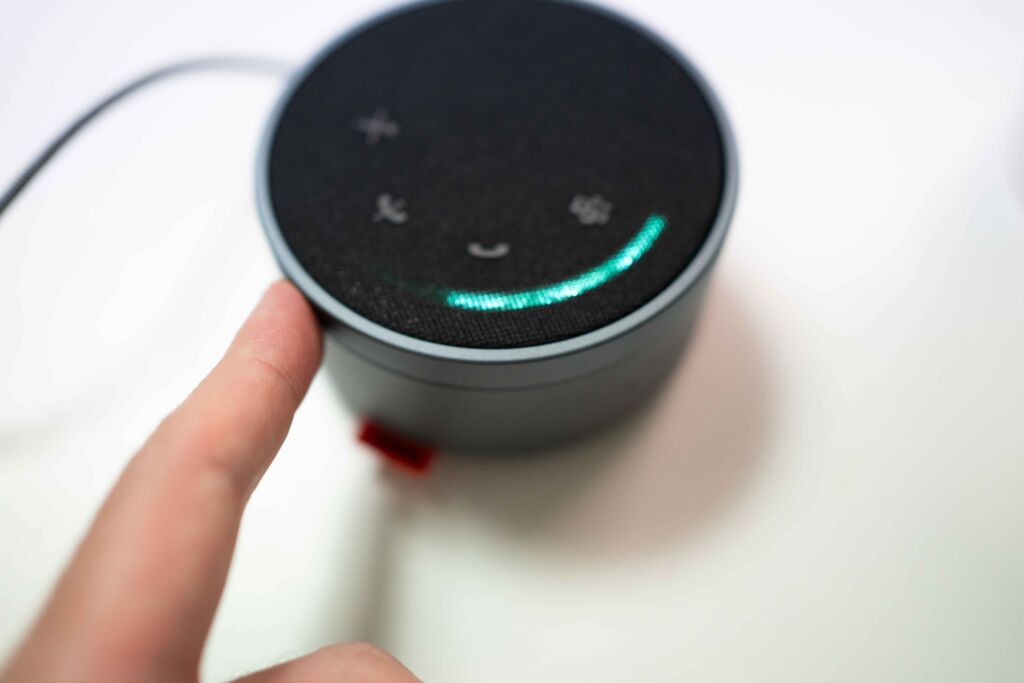ボタンを押すタイプと異なり、指先でなぞるだけで細かい音量調整が可能で、ミーティング中でも視線を外さず操作できます。