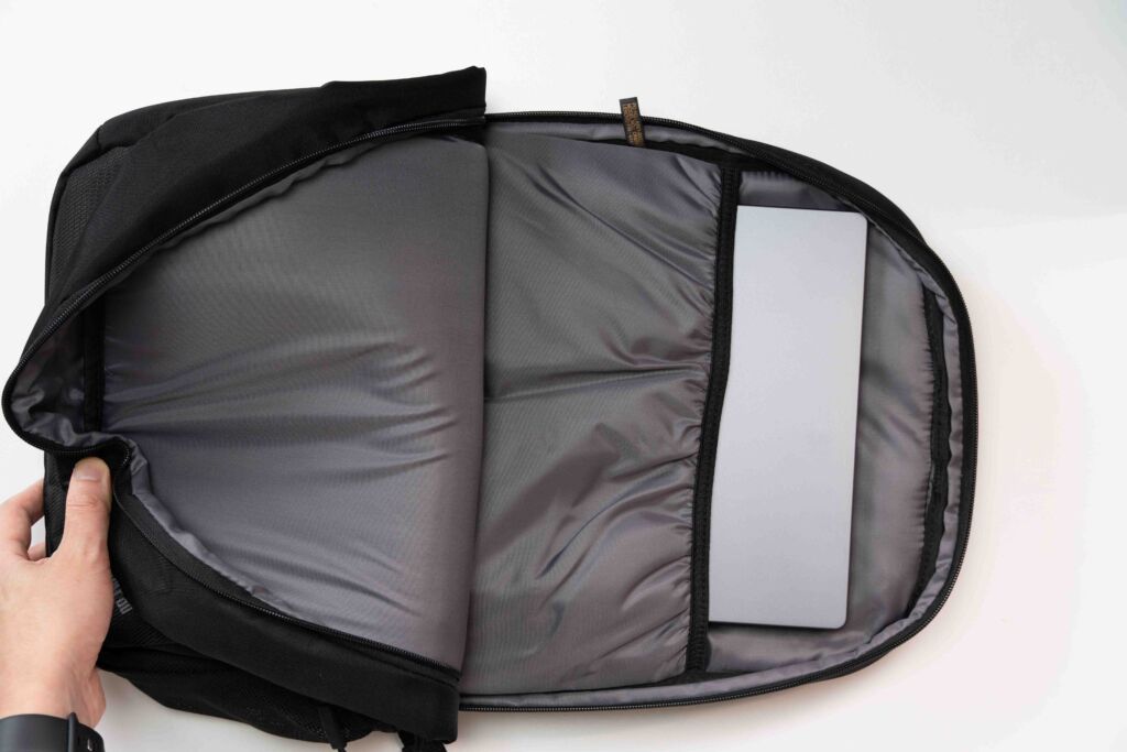 内部のクッション構造も十分で、**「必要な機能をきちんと備えた実用派リュック」**という印象です。
