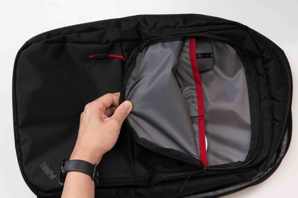 さらに、内部には赤のアクセントラインが入り、ThinkPadらしいデザイン性も感じられます。