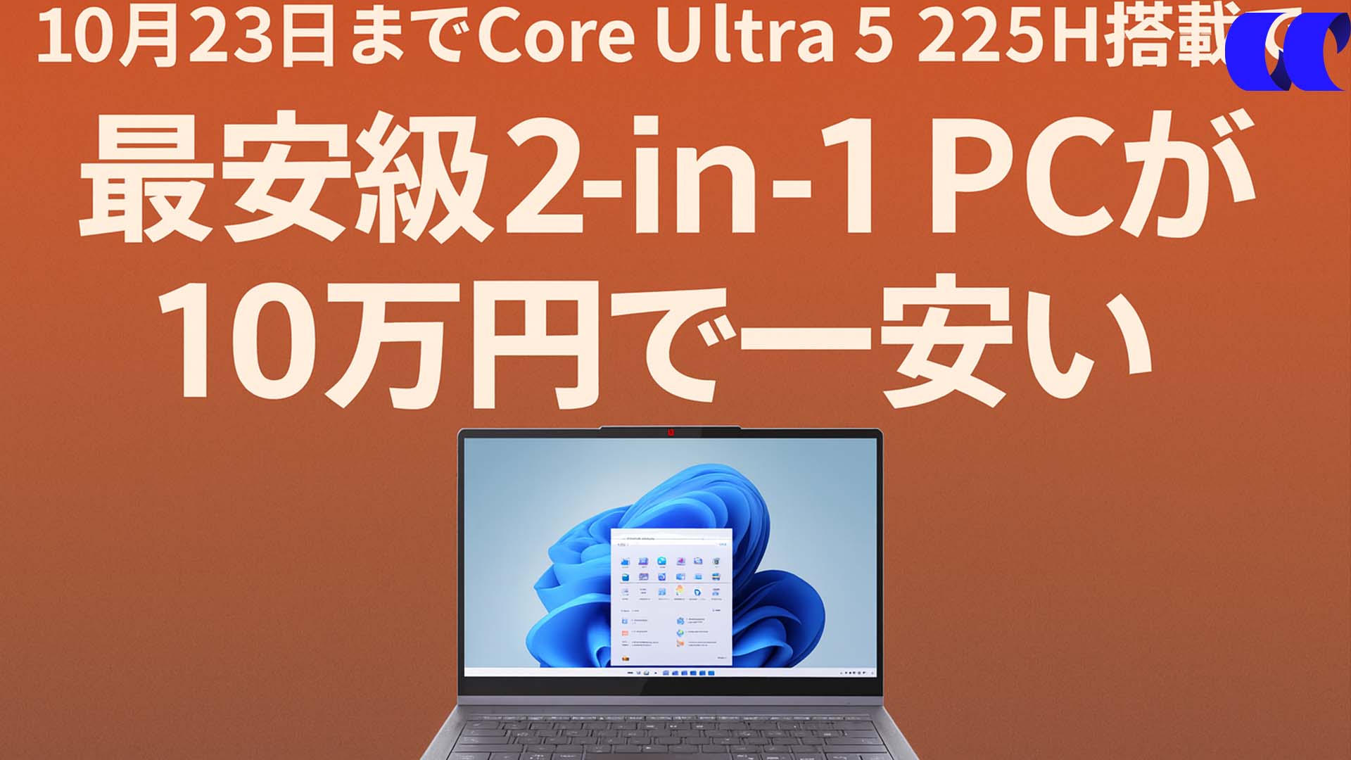 10月23日までの期間限定セールで、AI対応Core Ultra搭載モデルとしては最安級の価格帯。