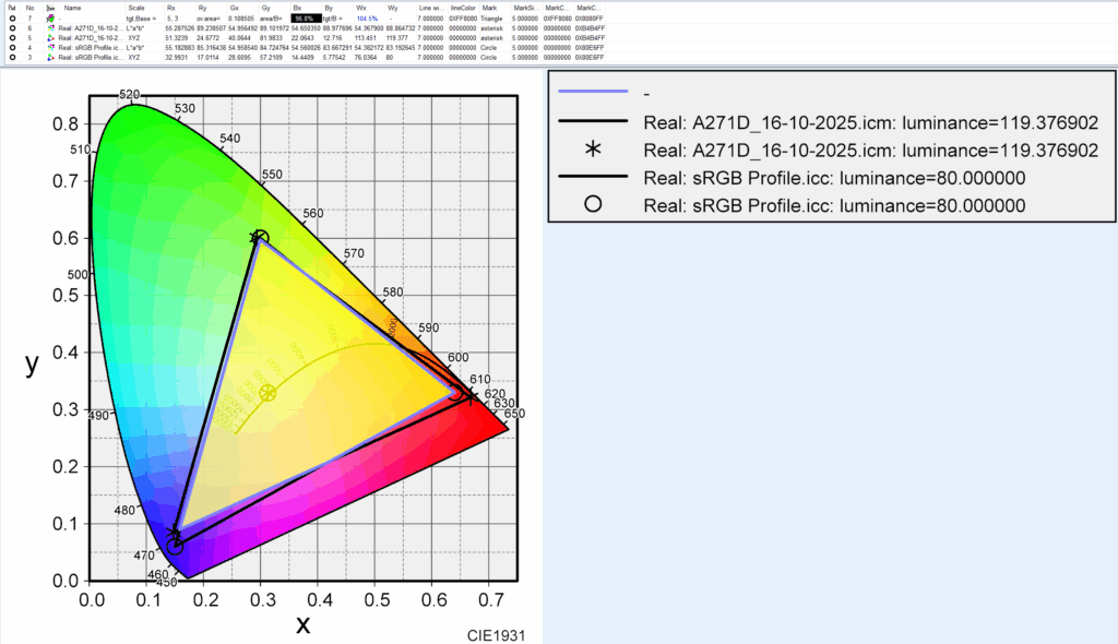 実測では最大輝度が300nitを超え、sRGBカバー率も約96.8%と、