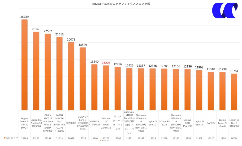 重量級ゲームタイトルを想定したベンチマーク3DMark Time Spyの結果です。