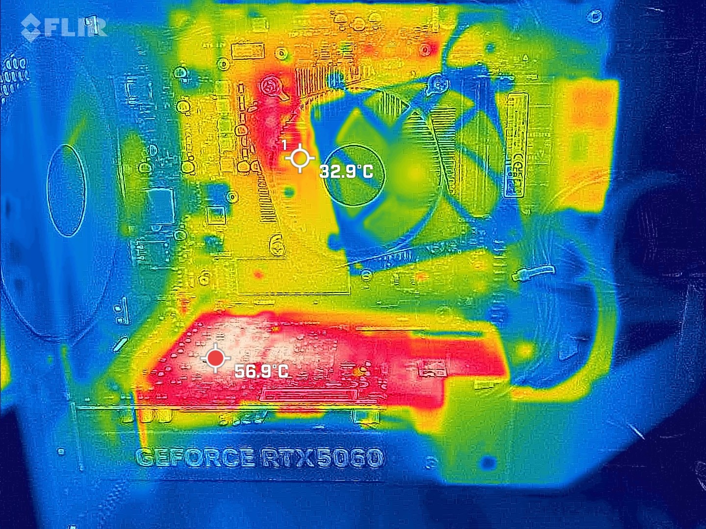 高負荷テスト実行中の内部温度をサーモグラフィで確認したところ、