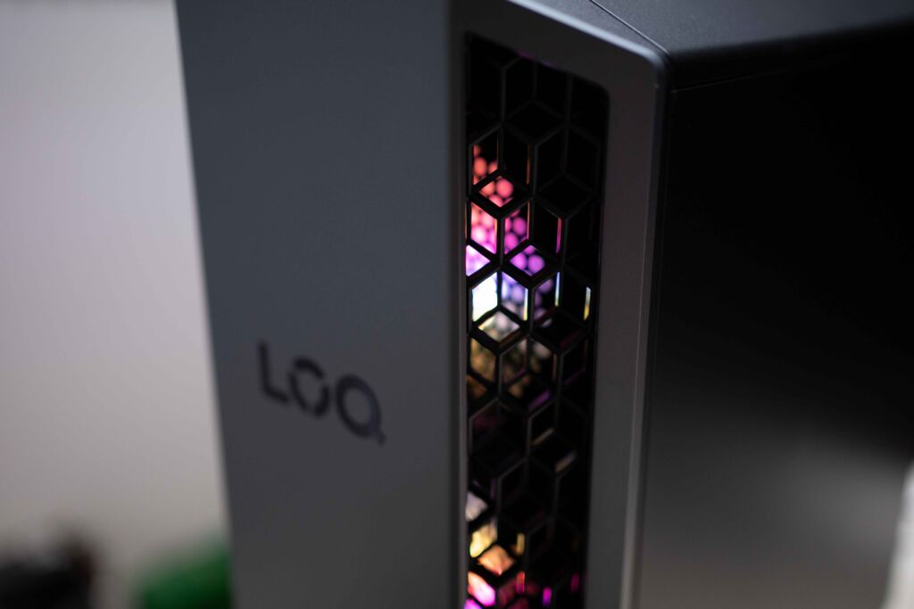 Lenovo LOQ Tower 26ADR10は、側面に強化ガラスパネルを採用しています。
