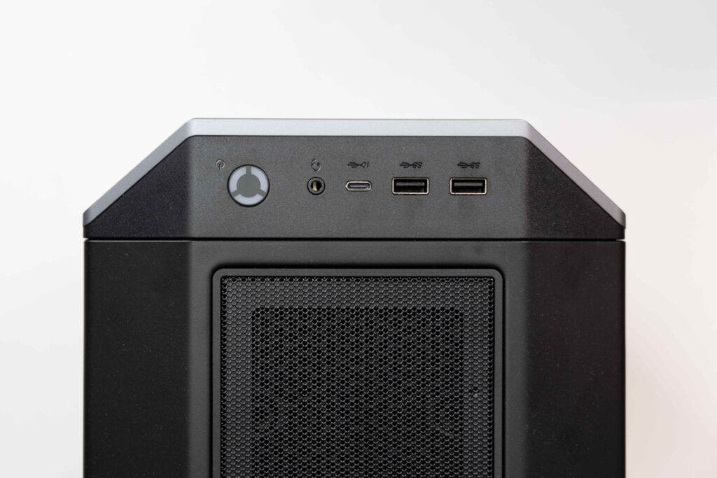 上部前方には、USBポートや電源ボタンなどのインターフェースが配置されており、
