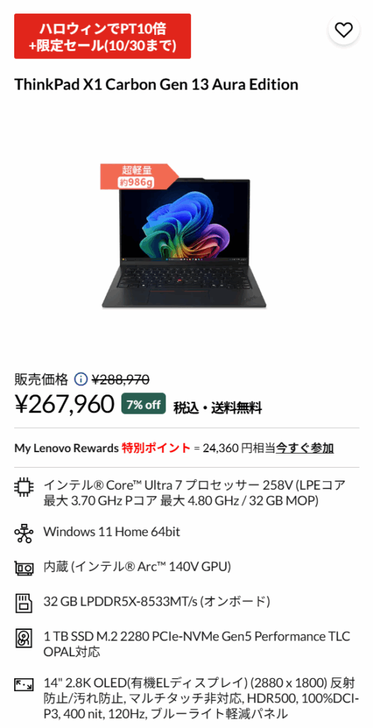 軽量・高性能・高品質の三拍子が揃ったThinkPad X1 Carbon Gen 13 Aura Edition。