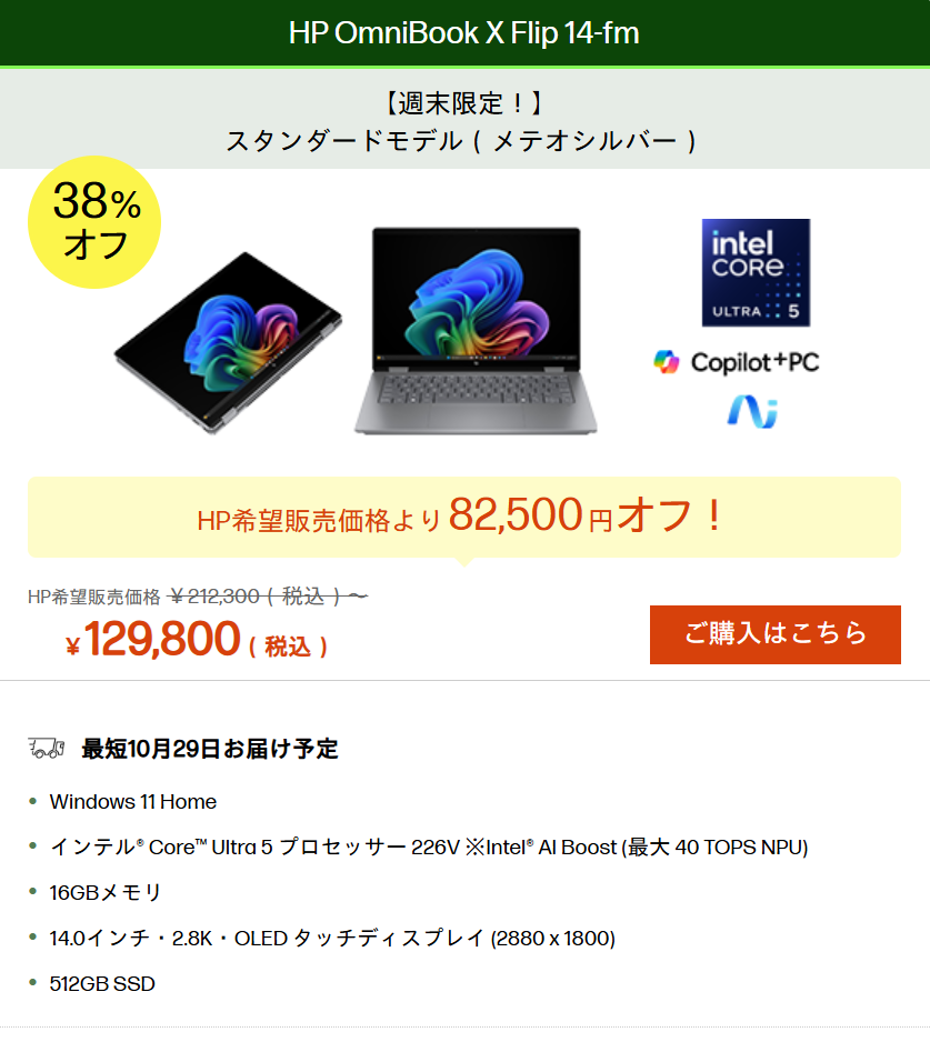 HP公式ストアでは、AI対応プロセッサを搭載した2-in-1ノートPC