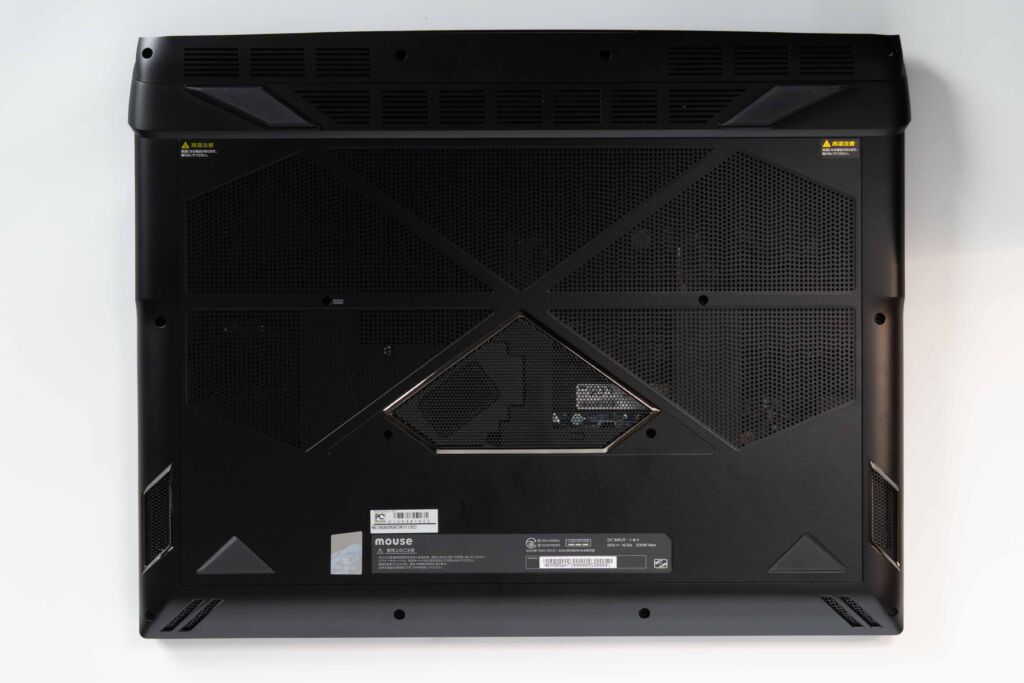 底面は広範囲にメッシュ加工が施されており、冷却性能を重視した構成になっています。