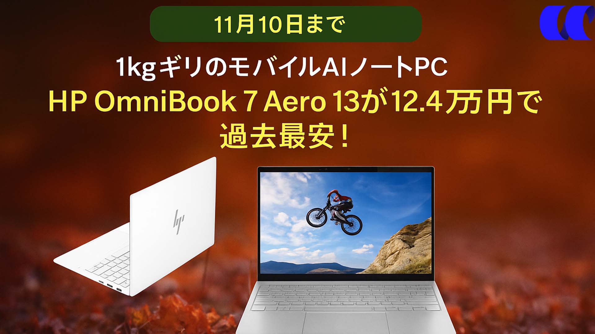 【11月10日まで】1kgギリのモバイルAIノートPC「HP OmniBook 7 Aero 13」が12.4万円で過去最安!