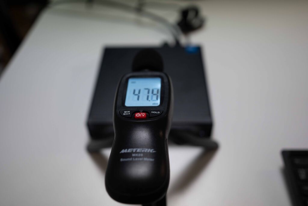 Cinebench実行時のファンノイズを計測したところ、最大47.8dBを記録しました。