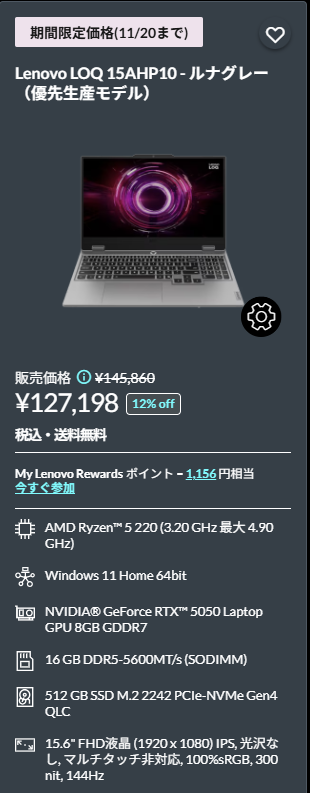 まとめ:12万円台でRTX 5050搭載は今だけの最安級