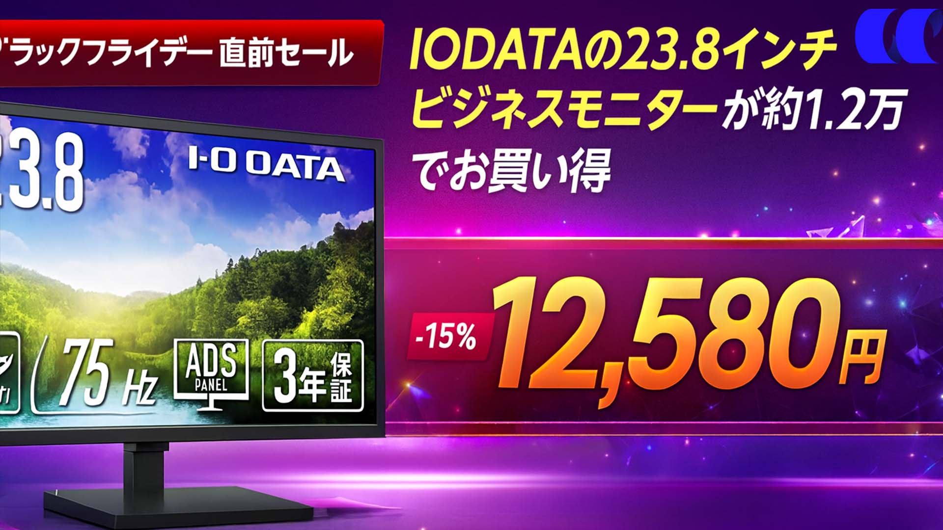 アイ・オー・データの23.8インチモニター 「EX-A241DB」 が、Amazonで**12,580円(税込)**のセールになっています。