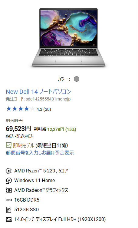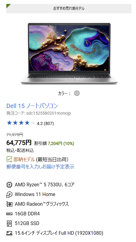 64,775円(税込)|最安クラスの15インチ万能モデル