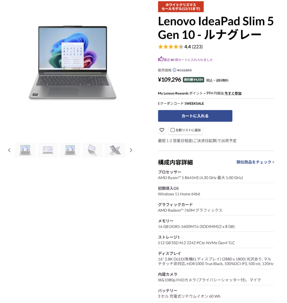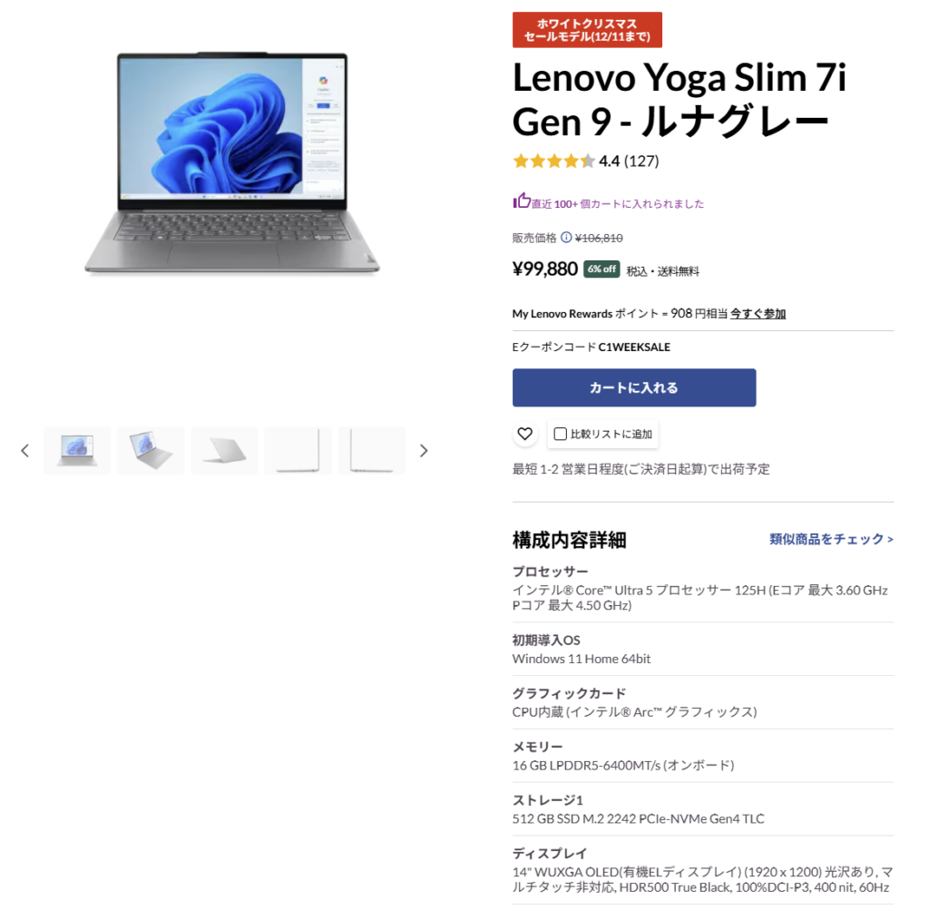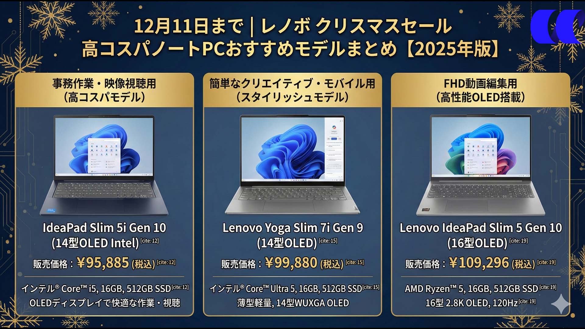 レノボのクリスマスセールでは、IdeaPad・Yoga・ThinkPad の人気シリーズが大幅値下げされています。