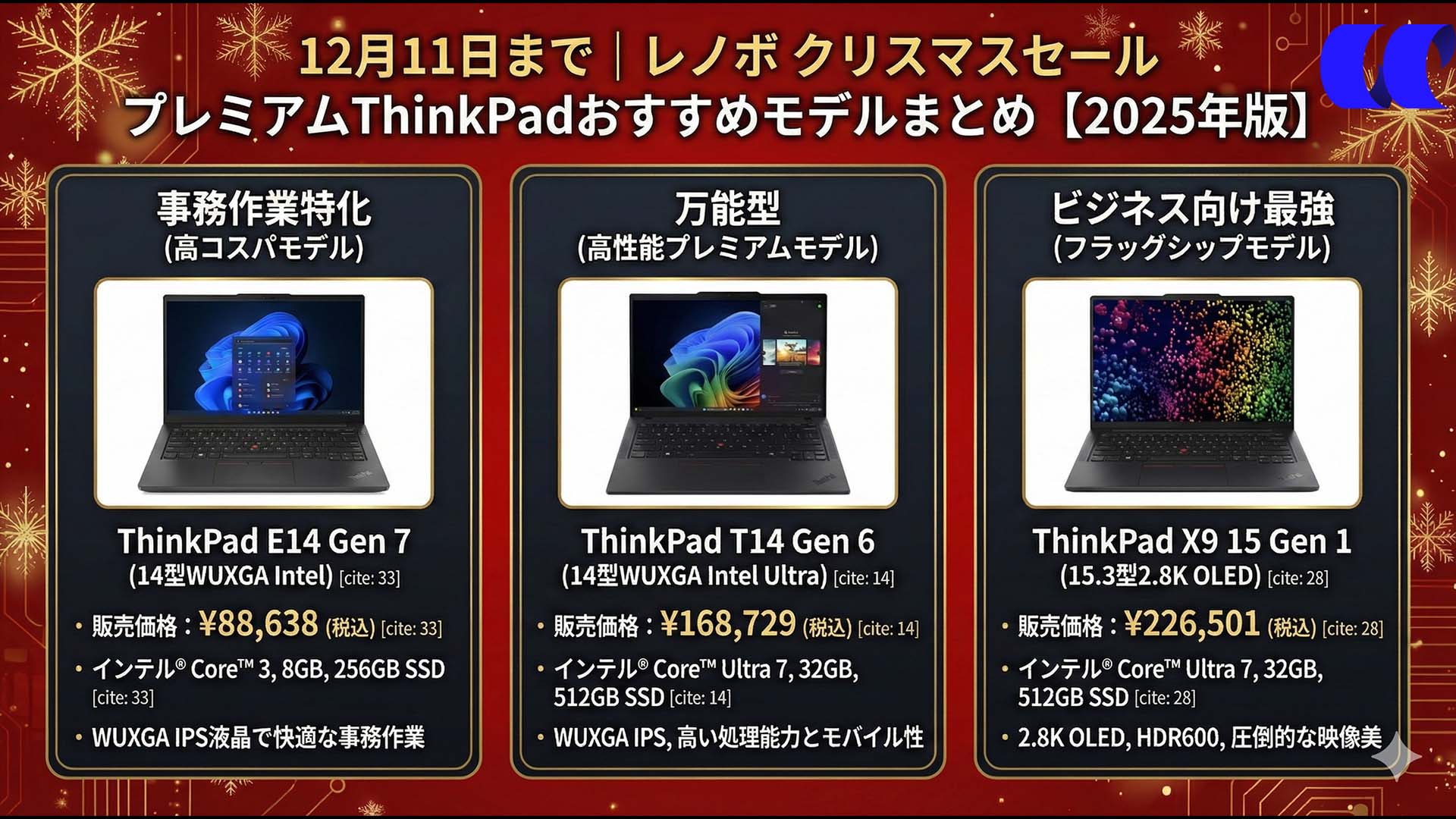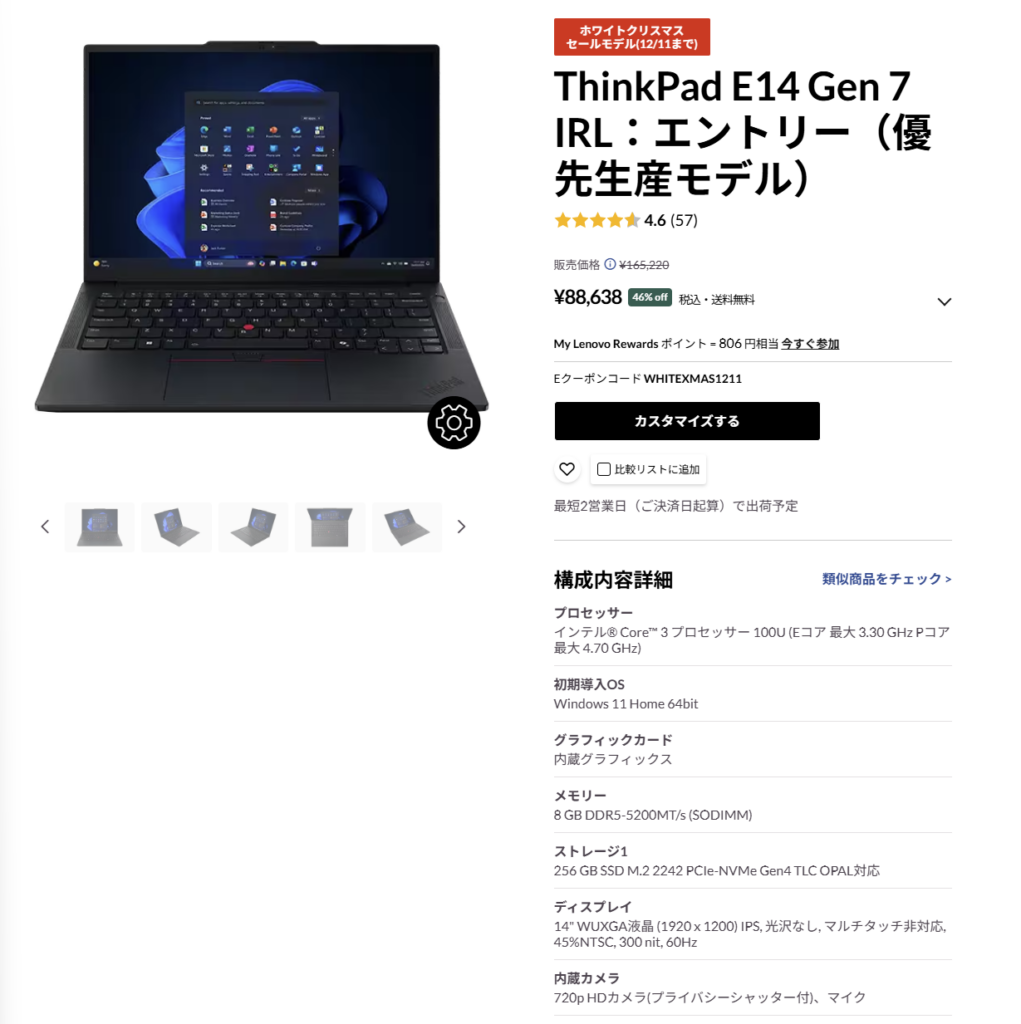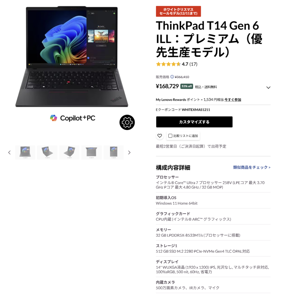 レノボのクリスマスセールでは、ThinkPadシリーズが年間でもトップクラスの値下げ幅 になっています。