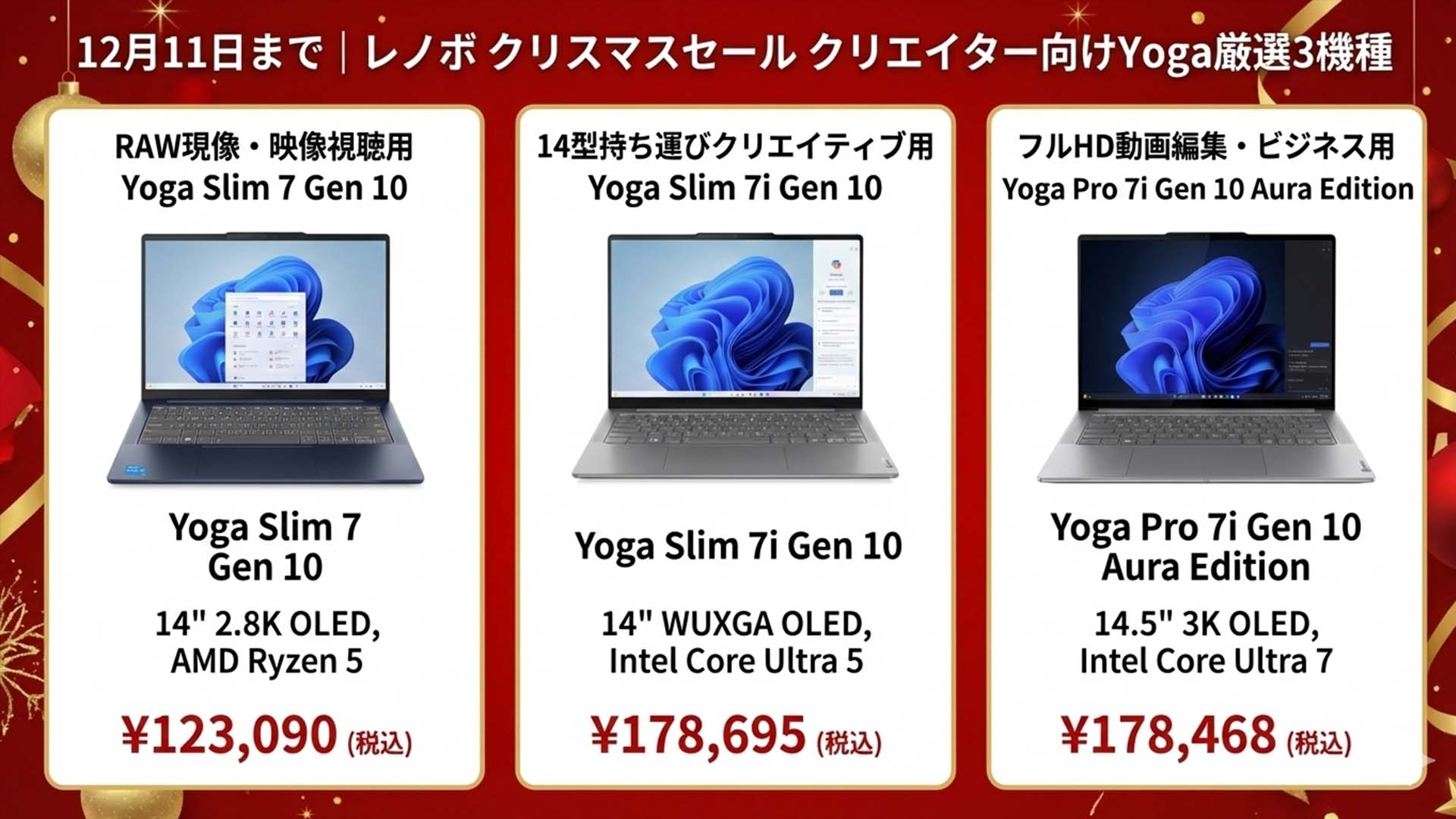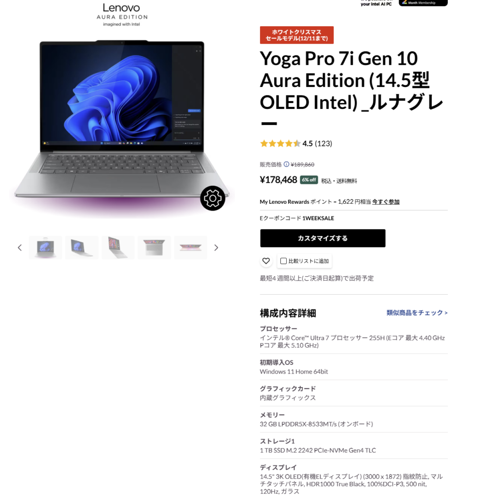 OLED搭載モデル・AI対応CPU搭載 Yoga シリーズが大幅値下げ されています。