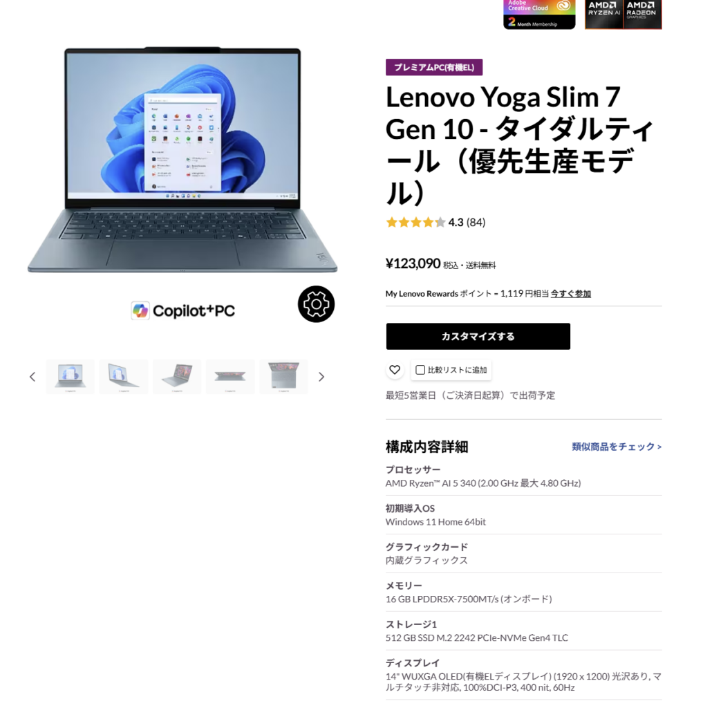 コスパ最強のYogaならコレ:RAW現像・画像編集に最適Lenovo Yoga Slim 7 Gen 10(Ryzen AI 5 340 / 14型OLED)