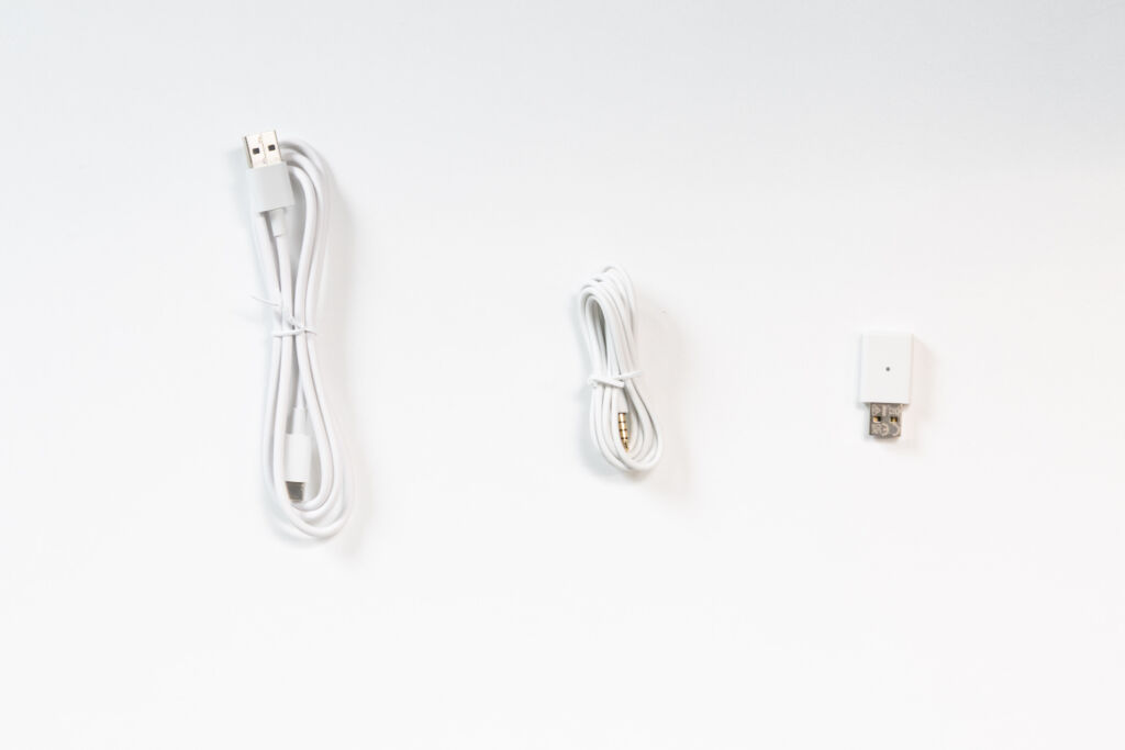 H600の接続方法は、USBドングルを使った2.4GHzワイヤレス接続に加え、USB-Cケーブルまたは3.5mmオーディオジャックによる有線接続にも対応しており、利用環境に合わせて柔軟に切り替えられる構成です。PCゲームでは遅延の少ないドングル接続が最も快適で、バッテリー残量が気になる場面ではUSB-Cを挿したまま有線ヘッドセットとして使える点も便利です。また、3.5mmケーブルを使えばスマホや携帯ゲーム機でも利用できるため、ワイヤレス専用モデルより汎用性が高い設計と言えます。