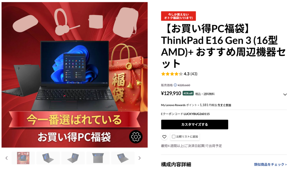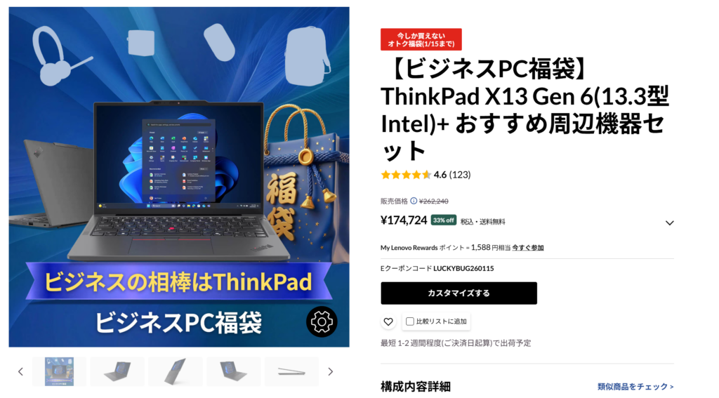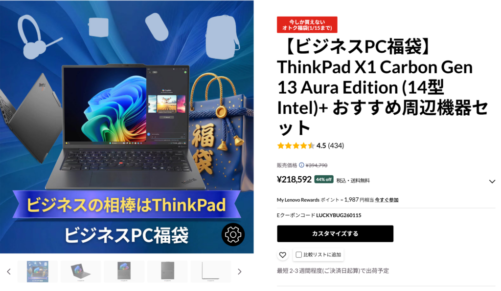 ThinkPadはもともと法人向け比率が高く、価格が下がりにくいシリーズですが、**年末年始の福袋は数少ない“狙い目タイミング”**です。