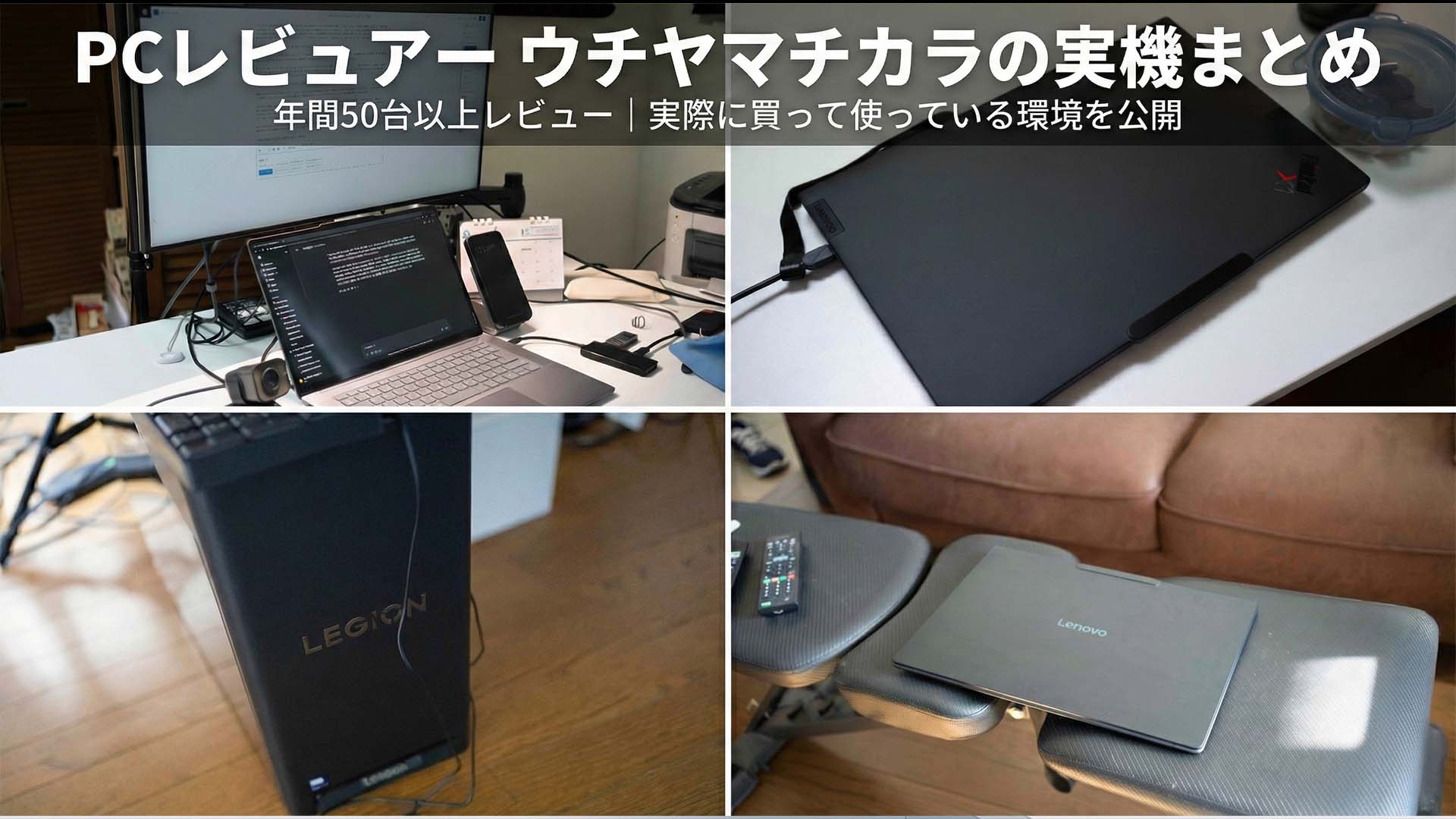 今回は、年間50台以上のPCをレビューしているウチヤマチカラが、実際に買って使っているものを紹介します。あわせて、ビジネス上の戦略や、僕なりのモノの選び方の基準も含めて解説していきます。