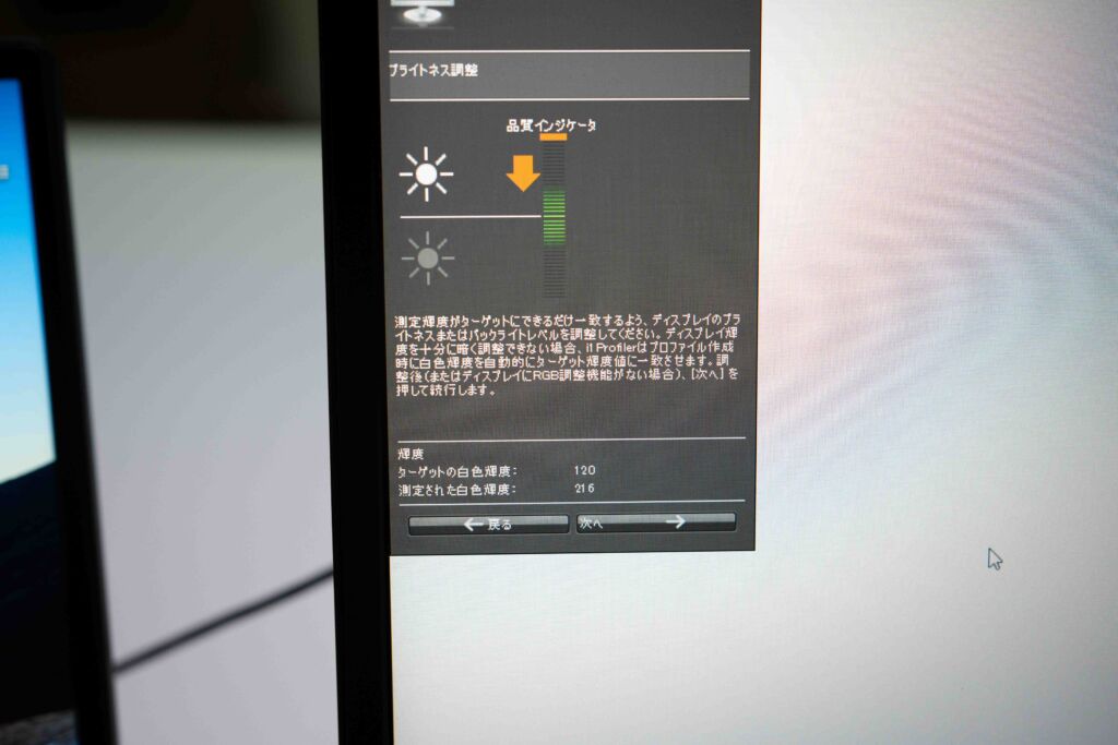 最大輝度は実測で約216nitでした。モバイルモニターとしては一般的な水準で、室内利用であれば大きな不満は出にくいと思います。
